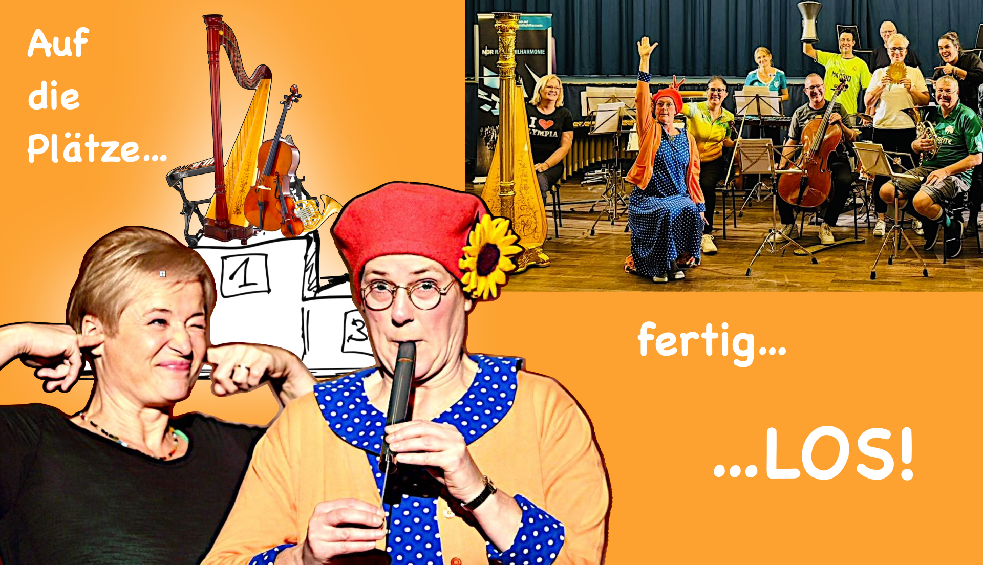 Endlich Frühling! Da macht Bewegung besonders viel Spaß, erst recht, wenn man sie hören kann! Das dachten sich auch unsere Klangsportlerinnen und Klangsportler der NDR Radiophilharmonie und treten zum Konzert im KörberHaus an. Was für ein Gedränge auf dem Siegertreppchen! Dieses Mal wird es sehr sportlich im Familienkonzert. Natürlich wollen alle Erste und Beste sein! Wer spielt länger, höher, lauter, leiser, tiefer, schneller? Wer schafft den schönsten Ton? Und wer den schrecklichsten? Das finden wir heraus! Wie gut, dass es jede Menge guter Ohren im Publikum gibt. Aber leicht wird es nicht, denn wir haben ganz verschiedene Instrumente für euch da. Und alle Musiküsse sind echte Klangsport-Profis! Hoffentlich haben sie sich alle gut aufgewärmt und sind super trainiert? Auch Frau Muse wollte unbedingt mit ihrem Instrument antreten. Hoffentlich bringt sie uns nicht wieder das ganze Konzert durcheinander! Also: Auf die Plätze des LichtwarkTheaters … fertig … los!